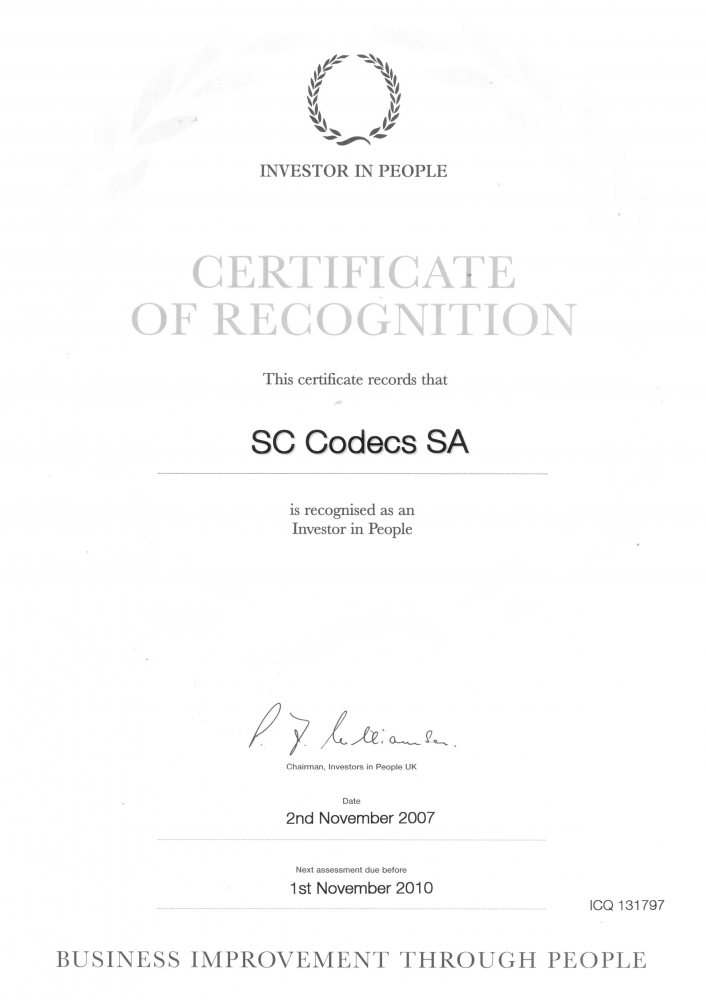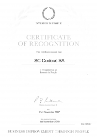 CODECS a fost acreditata "Investor in People" in luna noiembrie 2007, fiind una dintre primele companii din Romania cu aceasta certificare.